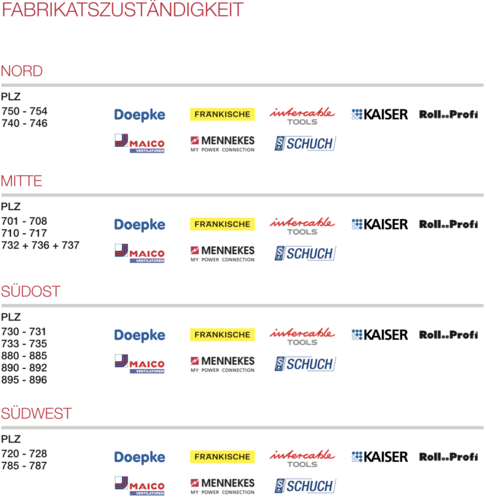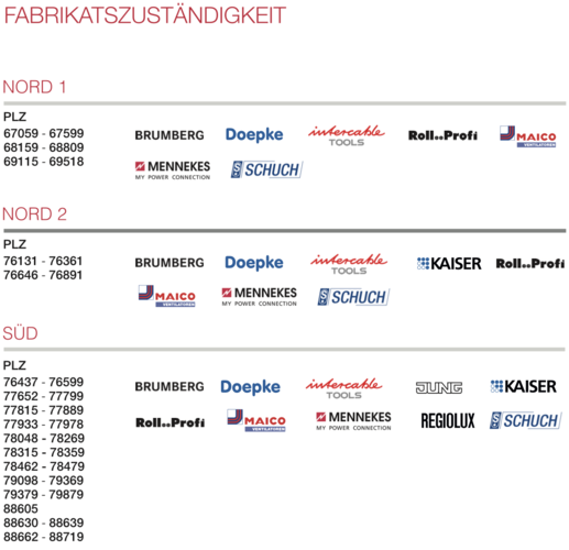 In unserem Vertriebsgebiet repräsentieren wir erstklassige Unternehmen der Elektroindustrie in unterschiedlichen Postleitregionen.